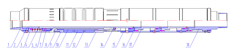 該封隔器由反循環(huán)洗井機(jī)構(gòu)、封隔件(膠筒)密封部分、座封機(jī)構(gòu)等部分組成。
